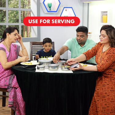 These push and lock bowls are made out of 100% Food Grade Stainless steel. Your food stays fresh for hours together. They come in Variable sizes for different storage. The set also has a nestable & stackable design to save on space. These bowls are also break-resistant bowls that make it perfect as a gifting option also.