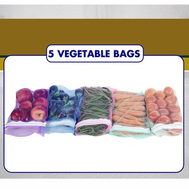 - 5 x Vegetable Storage Bags (PVC Net): 22 x 34 cm (Assorted colours)