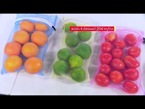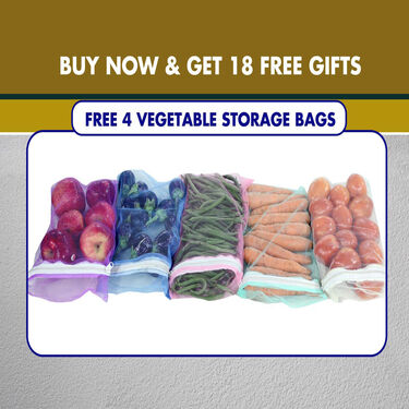 - 4 x Vegetable Storage Bags (PVC Net): 22 x 34 cm (Assorted colours)