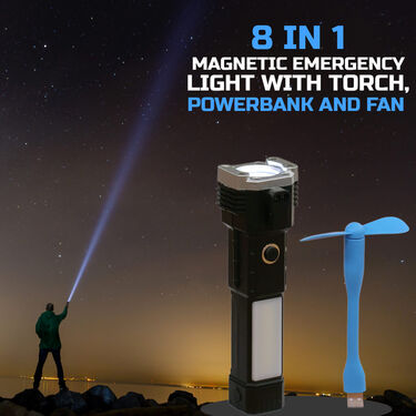 Power Packed Convenience - 8 in 1 Magnetic Emergency Light with Torch, Powerbank And Fan