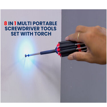Features 8 in 1 Torch Screwdriver: